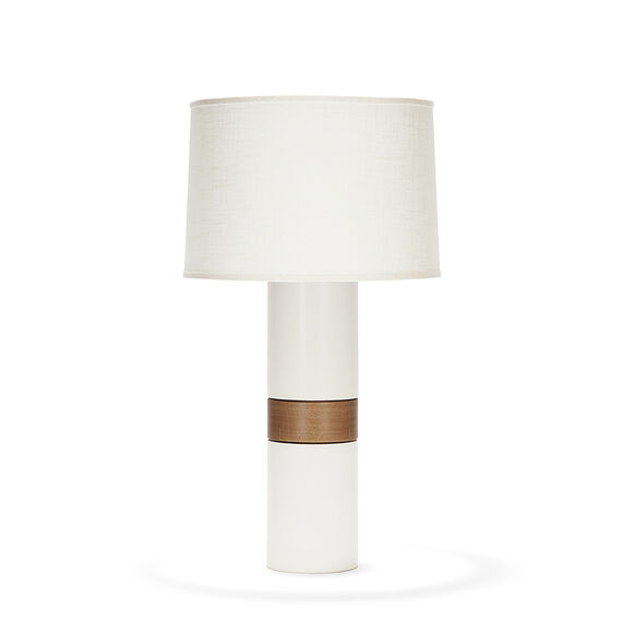 Our value-engineered Studio collection, also handmade by us in the Catskills, is offered in a limited roster of glazes (White Quartz and Obsidian), metal finishes (Gunmetal), and wood species (Walnut). The fabric lampshade options are White or Canvas, with taped edges. Every Studio lamp can be customized with any of our extensive Stone and Sawyer finishes for an upcharge. Contact us at info@stoneandsawyer.com.