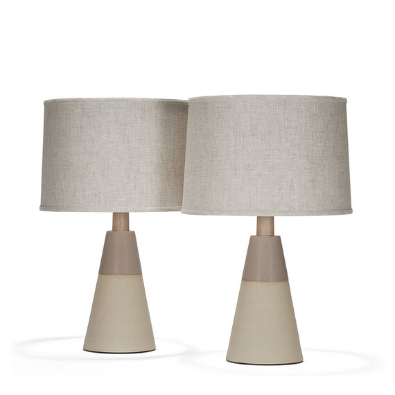 We handcraft each of our stoneware ceramic table lamps in our Upstate New York studio. The Gio II is available in any of our five core glazes (Fossil Gray, Pigeon, White Quartz, Charcoal, Obsidian) or 72 custom glazes, with solid Walnut, Ebonized Walnut or White Oak neck, hand-finished Blackened Brass or Satin Brass hardware, cloth-covered cord, and Belgian Linen shade in cream or natural. Each lamp is UL listed.