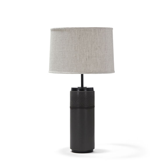 We handcraft each of our stoneware ceramic table lamps in our Upstate New York studio. The Heyward is available in any of our five core glazes (Fossil Gray, Pigeon, White Quartz, Charcoal, Obsidian) or 72 custom glazes, with solid Walnut, Ebonized Walnut or White Oak cap and base, hand-finished Blackened Brass or Satin Brass hardware, cloth-covered cord, and Belgian Linen shade in cream or natural. Each lamp is UL listed.