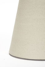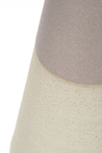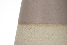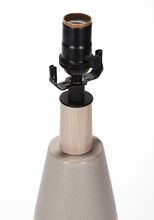 Pair of stoneware ceramic table lamps in our rugged hand-carved Mesa finish in Wolf, the top portion of the vessels detailed in smooth Fog glaze. The lamps have hand-finished Blackened Brass hardware, Driftwood-finished White Oak necks and Belgian Linen shades in Natural.