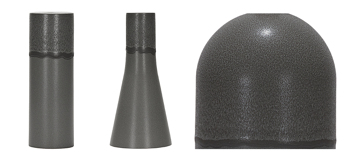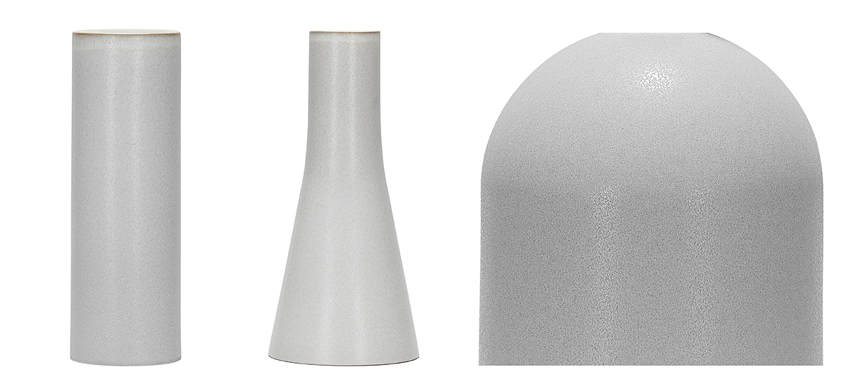 To achieve the refined finish of Fossil Gray, we apply multiple glazes in sequence before firing each ceramic vessel. This can yield a vertical striation reminiscent of a Scandinavian hare's fur or a more even, speckled surface. The range is shown below.