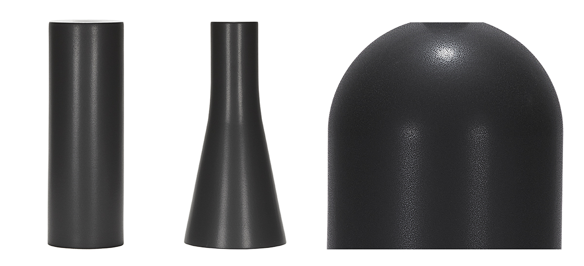 We achieve our Bouclé finish through a combination of fine carved radial lines and many applications of clay to the surface of each vessel. Once the lamp body is fully dry, we fine-tune the surface before bisque firing. We finish the vessel in Anthracite glaze, which runs and softens the surface, creating a texture evocative of nubbly bouclé fabric.