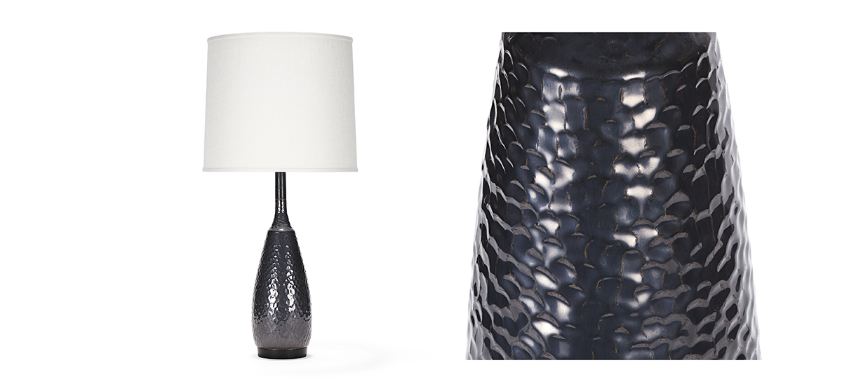 Our Charcoal glaze is a rich dark gray with a quiet hint of sage. The hand-applied glaze treatment at the top of each lamp body results in a range of beautiful textures and draping qualities.