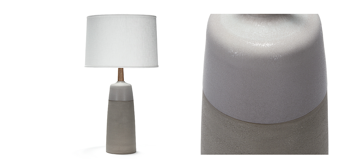 We chose mid-fire stoneware as our primary medium because of its durability and its exceptional range of glaze character. Glazing is a chemical reaction of organic minerals under heat that begets subtle differences every time. This hands-on process makes each of our lamps unique. We produce in small batches, each kilnload with its own set of nuanced details, color variations and character. Taking this into account, we carefully match lamp pairs so they partner well together.